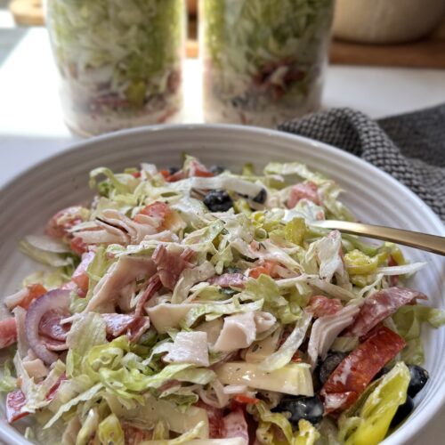 Recreate the viral Jersey Mike’s #7 sub in a bowl with this easy, low-carb recipe—loaded with turkey, provolone, veggies, and tangy dressing. Includes an Italian deli meat option and meal prep tips!