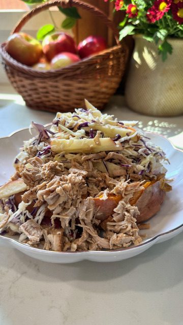 You’ve got the perfect balance of sweet, smoky, creamy, and spicy in every bite. Picture this: roasted sweet potatoes with that soft, caramelized center, filled with saucy BBQ chicken, topped with melty pepper jack cheese, and finished with a creamy Greek yogurt elote corn topping. It’s comfort food with a fresh, healthy twist that feels exciting to eat—and trust me, it tastes just as good reheated the next day.