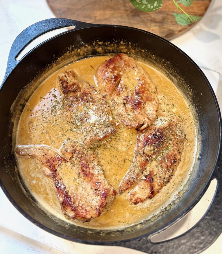 This Pan-Seared Chicken with Lemon Cream Sauce is a restaurant-worthy dinner you can make in just 30 minutes! Juicy chicken breasts are seared golden, then