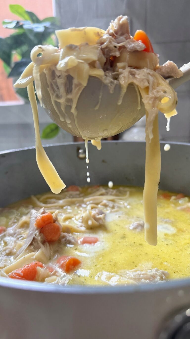 There’s just something about a bowl of creamy chicken noodle soup that feels like a warm hug — the kind that instantly makes everything better. Whether you’re fighting off a cold, coming in from the cold, or just craving something cozy, this is the kind of meal that brings everyone to the table without even calling them.