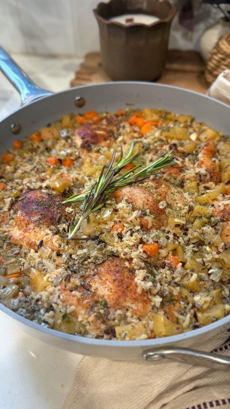 There’s something about fall that makes me crave cozy one-pot dinners — meals that fill the house with warmth and feel like a hug in a bowl. This Fall One-Pot Chicken & Wild Rice has quickly become one of those go-to dinners in our home.