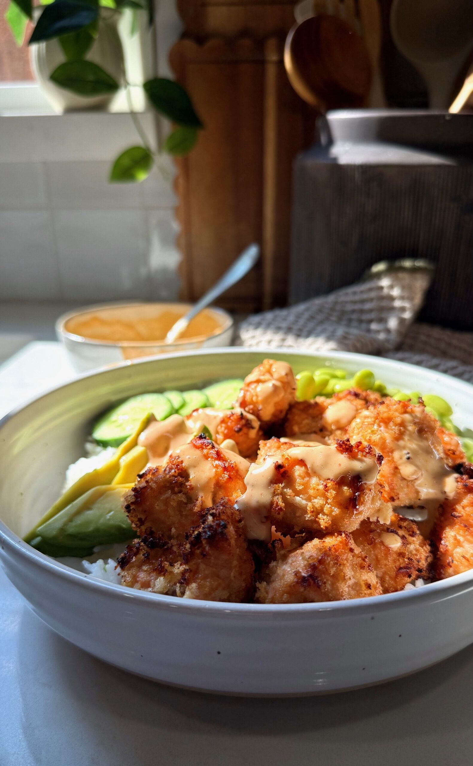 Crispy SALMON SUSHI BOWLS WITH TERIYAKI AIR-FRIED SALMON