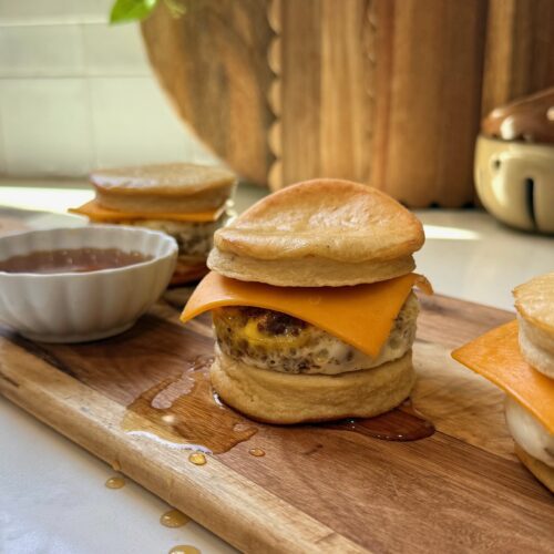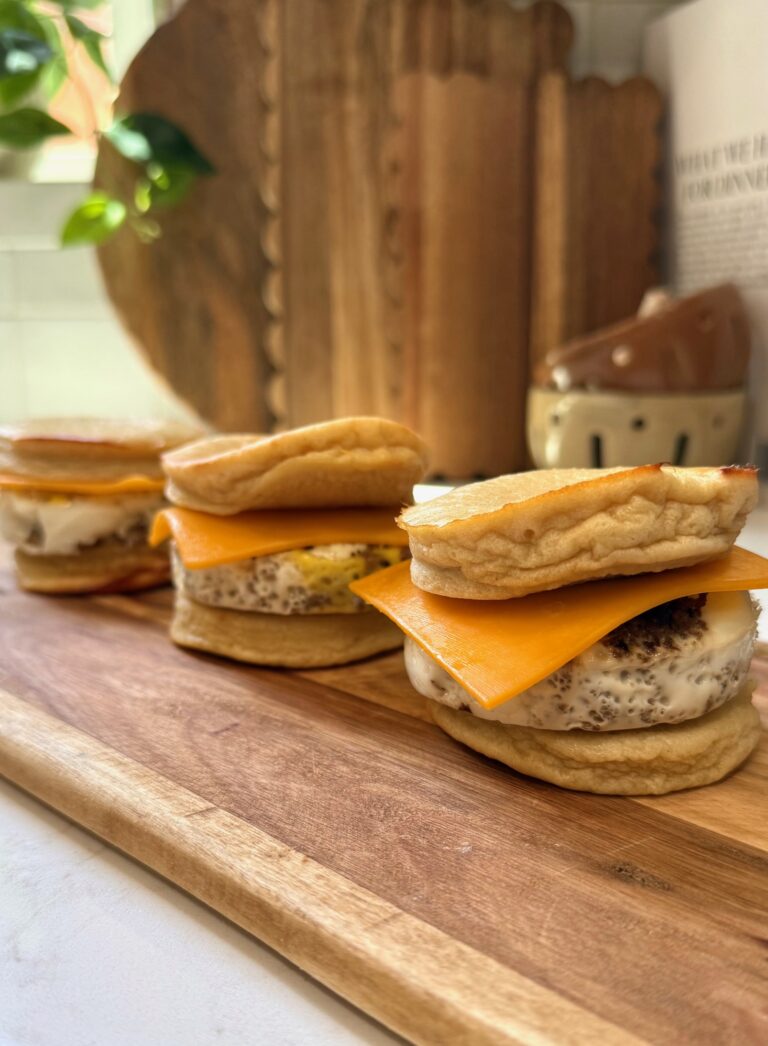 Skip the drive-thru and make these high-protein McGriddle sandwiches at home! Made with fluffy protein pancakes, sausage, egg, and melty cheddar, these freezer-friendly breakfast sandwiches are perfect for busy mornings.