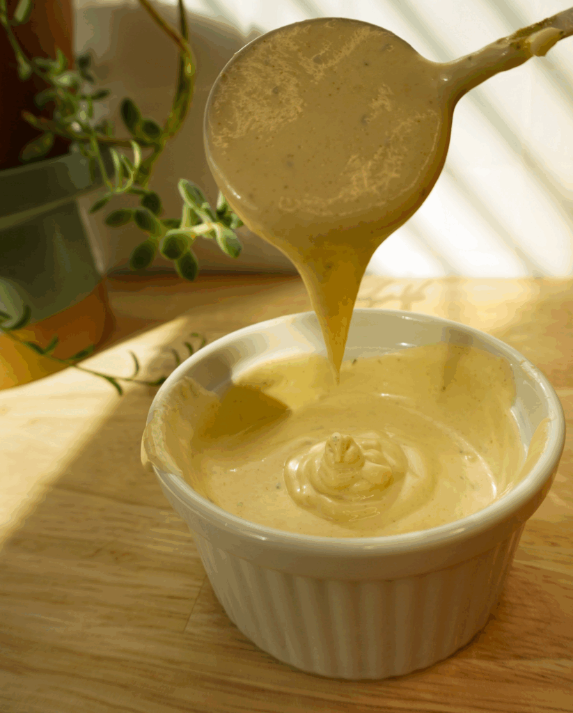 • Add all of the ingredients for the aioli into a mason jar and blend with an immersion blender until smooth.